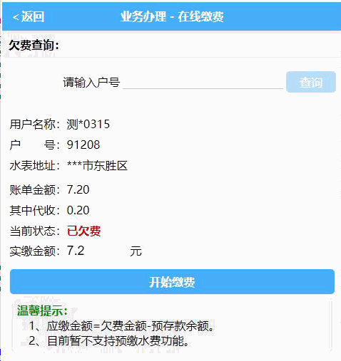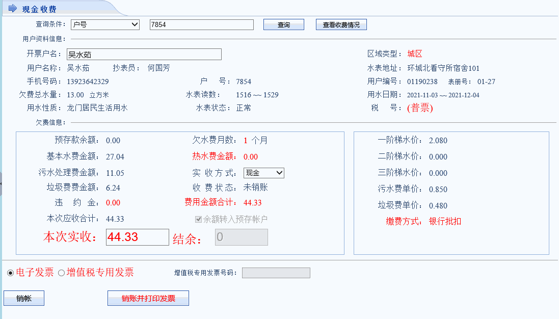 1)查询欠费,并缴费