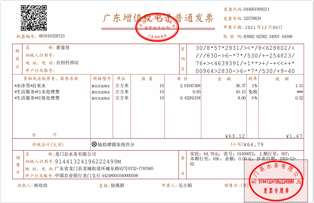 电子发票样例: